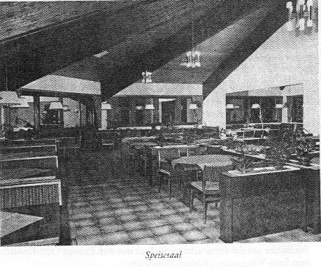 mit Speisesälen und Küche errichtet.