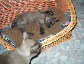 c) wenn ein Hund in meinem Körbchen liegt, machen wir es uns dort auch bequem