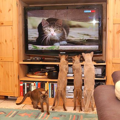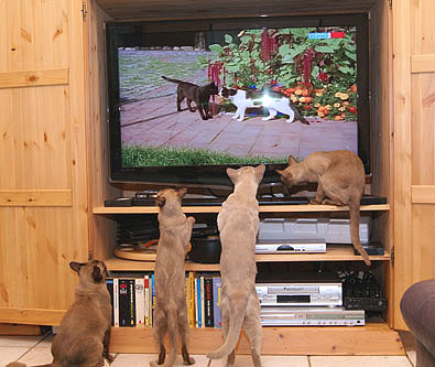 Im Fernsehen gibt es einen Film über Katzen, whow sehr interessant !